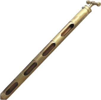 Пробоотборник состоит из двух латунных концентрических трубок, каждая из которых имеет прорези. Внутренняя трубка вращается, закрывая щели и собирая пробу.