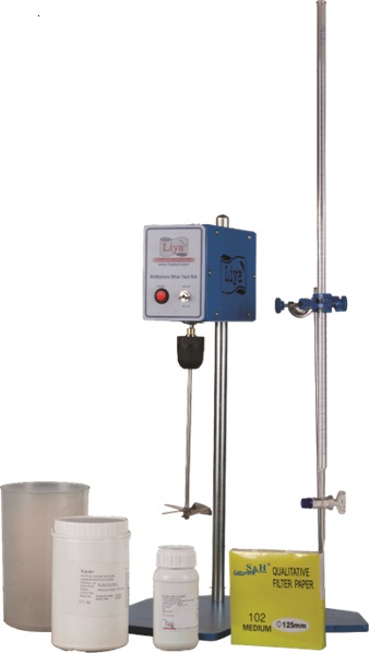 Набор для тестирования метиленового синего Liya Test используется для определения мелких частиц в заполнителях. Он основан на определении значения метиленового синего (МВ) в диапазоне 0–2 мм в мелких агрегатах или негруппированных агрегатах. В наборе поставляются скоростной миксер 400/600 дв/мин, пластиковый стакан 2000 мл, стеклянный багет, стеклянная бюретка 50 мл, держатель и подставка для бюретки, 100 г метиленового порошка, 500 г каолинита, 100 кусочков фильтровальной бумаги.